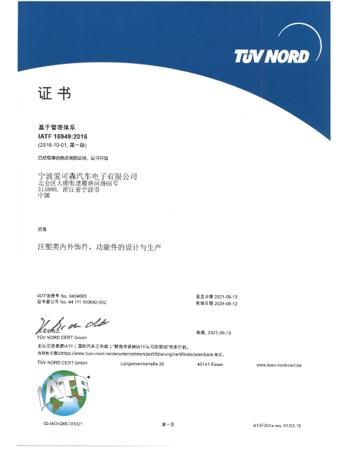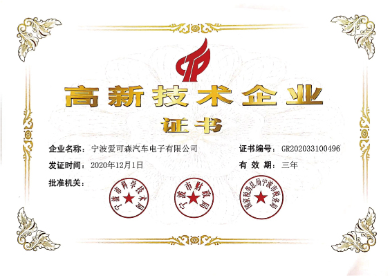 宁波爱可森汽车电子有限公司成立于2014年,是一家集研发、制造、销售于一体的新型汽车零部件供应商,公司坐落于东海之滨一全球最大港口城市宁波北仑,占地50亩,拥有员工400余人,全国主机厂配套供货超20多家。